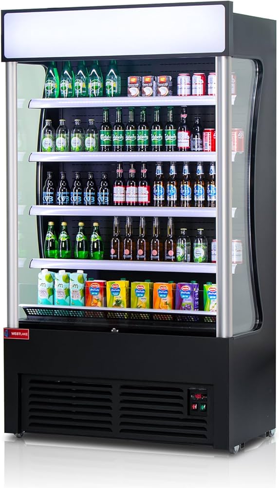 Nevera exhibidora abierta sencilla con luz LED. Capacidad de 220L con 3 rejillas ajustables.